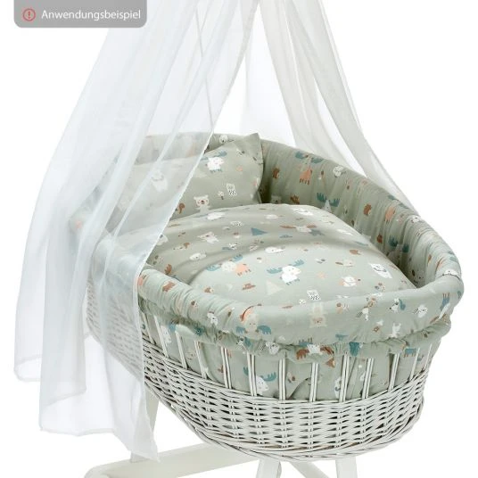Mit der Bettwäsche 80 x 80 cm – Baby Forest von Alvi wird das Babybettchen, die Wiege und der Kinderwagen zur bequemen und hübschen Schlafstätte. Die zweiteilige Bettwäsche besteht aus einem Kopfkissen- und einem Deckenbezug mit Knopfverschlüssen. Der niedliche Print lädt Dein Baby zum Kuscheln und Träumen ein. Das weiche Material besteht aus reiner, hautfreundlicher Baumwolle und ist besonders atmungsaktiv.