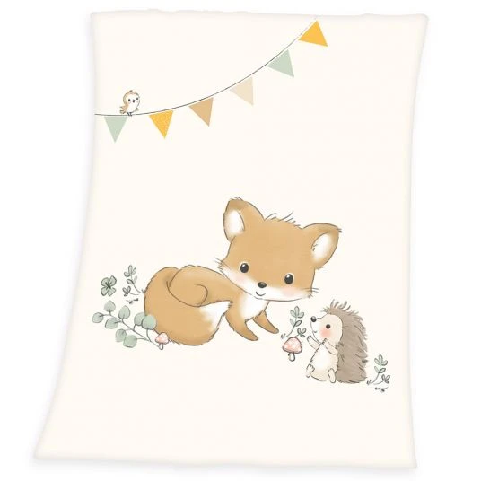 Auch Zuhause ist sie ein wahres Multitalent: Ob als Schmusedecke, zum Spielen oder als Wickelunterlage, die Decke ist vielseitig einsetzbar. Mit ihren praktischen Maßen von 75 x 100 cm kannst Du sie immer mitnehmen und platzsparend zusammenlegen. Die zuckersüßen Waldtiere Igel, Fuchs und das kleine Vögelchen machen den Kuschelbegleiter zu einem bezaubernden Hingucker.