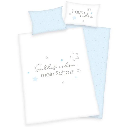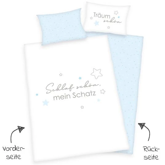- praktische Wendebettwäsche mit schönem Schriftzug & süßen Sternchen oder zartem Blau