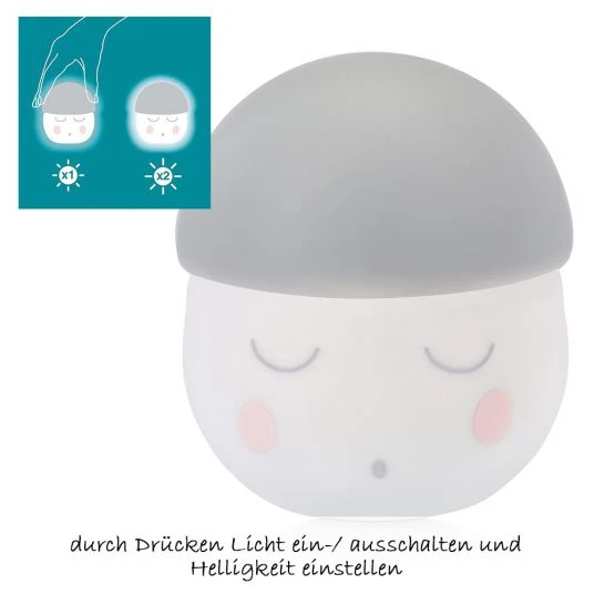 Das Nachtlicht Squeezy im Farbton Zink von Babymoov beruhigt Dein Baby mit sanfter Beleuchtung. Durch einfaches Zusammendrücken wird das elastische Licht angeschaltet. Die Helligkeit kannst Du durch weiteres Drücken einstellen. Der enthaltene Akku hat eine Laufzeit von ca. 200 Stunden und ist per Mikro-USB-Kabel wiederaufladbar. Wenn Du den integrierten Timer aktivierst, schaltet sich das Nachtlicht nach 30 Minuten selbstständig aus.