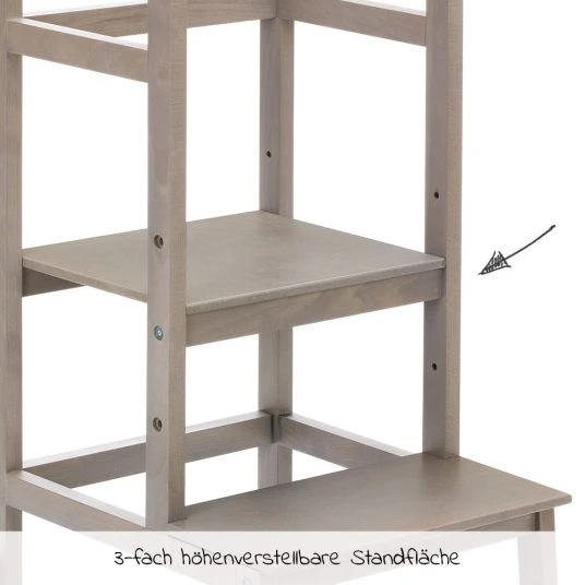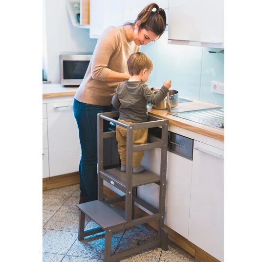 Dein kleiner Sonnenschein ist schon sehr neugierig und will am liebsten überall mithelfen oder mitschauen? Dann ist der Lernturm Grau von Fillikid aus Buchen-Hartholz genau der Richtige für Dich. Er ist nicht nur schön anzusehen und fügt sich mit seinem modernen aber schlichten Design perfekt in jede Wohnumgebung sondern er steht auch noch äußerst stabil und bietet mit seinen seitlichen Stützen und seiner massiven Bauweise einen hervorragenden Schutz vor dem Umkippen. Beim Einsatz in der Küche kann Dein Kleinkind die Abläufe beim Kochen mühelos beobachten und sich zudem am Küchenspaß beteiligen. Gemeinsames Kochen wird durch den Learningtower erleichtert, da Du Deine Hände frei hast.