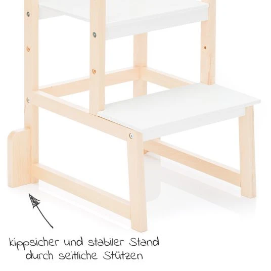 Dein kleiner Sonnenschein ist schon sehr neugierig und will am liebsten überall mithelfen oder mitschauen? Dann ist der Lernturm Natur von Fillikid aus Buchen-Hartholz genau der Richtige für Dich. Er ist nicht nur schön anzusehen und fügt sich mit seinem modernen aber schlichten Design perfekt in jede Wohnumgebung sondern er steht auch noch äußerst stabil und bietet mit seinen seitlichen Stützen und seiner massiven Bauweise einen hervorragenden Schutz vor dem Umkippen. Beim Einsatz in der Küche kann Dein Kleinkind die Abläufe beim Kochen mühelos beobachten und sich zudem am Küchenspaß beteiligen. Gemeinsames Kochen wird durch den Learningtower erleichtert, da Du Deine Hände frei hast.