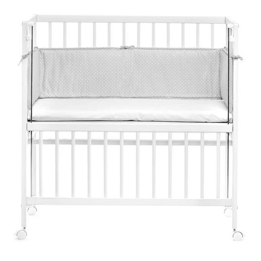 Das Nestchen für Beistellbett Premium Vario 3in1 von Fillikid verwandelt das hochwertige Beistellbett in ein kuscheliges Schlafplätzchen. Zum Polstern der Gitterstäbe wird es einfach mit den Bindebändern am Bettchen befestigt. Das Nestchen besteht aus hautfreundlicher und atmungsaktiver Baumwolle.