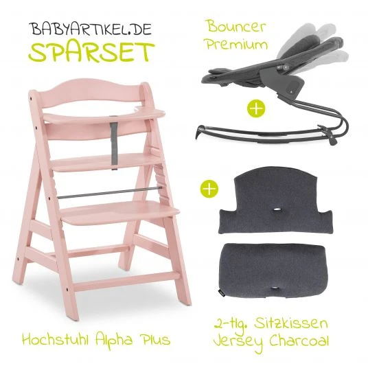 Jetzt exklusiv bei Babyartikel.de – die neueste Version des beliebten Alpha Hochstuhl-Set ab der Geburt. 4in1 Paket: Inkl. Alpha Hochstuhl, Neugeborenenaufsatz und Babywippe sowie einem weichen Sitzpolster. NEU: flache Liegefläche, Baumwollstoffe und Schaukelfunktion.