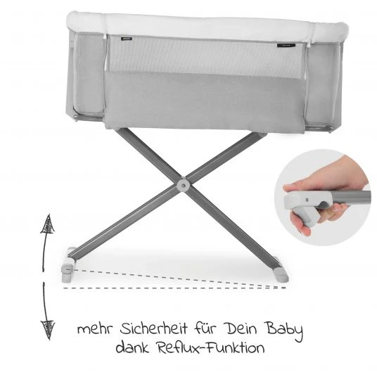 - Ausstattung: Einfacher Klappmechanismus, Reflux-Funktion für mehr Sicherheit, flexible Höhenverstellbarkeit von 66 – 86 cm, absenkbares Seitenteil, luftdurchlässiger Netzstoff