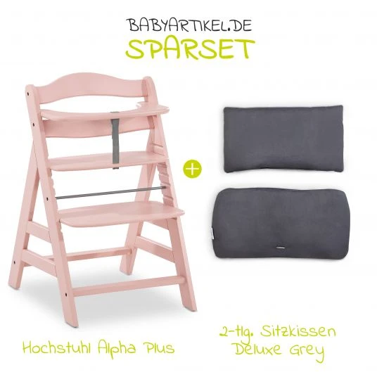 JETZT IM SPARSET INKL. DELUXE SITZAUFLAGEIn diesem Set ist das 2-teilige Sitzkissen Deluxe Grey bereits enthalten. Das weiche Sitzkissen mach Deinen Alpha Hochstuhl nicht nur bequemer, es macht auch optisch viel her. Du kannst das Kissen einfach per Klettverschluss an der Rückenlehne und auf der Sitzfläche befestigen. Wenn beim Essen mal etwas daneben geht, kannst Du das Kissen einfach reinigen.