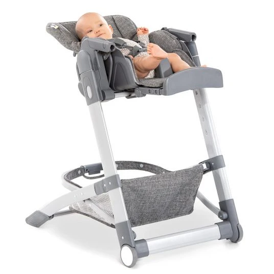 Das Gestell kann in der Höhe 6-fach verstellt und perfekt an den Tisch angepasst werden. So hast Du Deinen Schatz immer im Blick. Wird der Grow Up nicht gebraucht, lässt er sich super flach zusammenklappen und platzsparend verstauen. Für einen stabilen Stand sorgt das leichte Gestell aus Aluminium. Dank der breiten Standfläche ist der Hochstuhl sehr kippsicher. Dank der vorderen Rollen kann Du ihn einfach verschieben. Die gepolsterten Gurte sichern Dein Kind zuverlässig in der Babyliege und Hochstuhl.