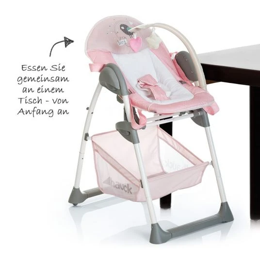 Der Esstisch ist der Familientreffpunkt Nummer Eins. Lass Dein Kind vom ersten Tag an aktiv daran teilhaben. Der Sit’n Relax – Birdie von Hauck ist Babyliege und Hochstuhl in Einem. Durch die praktische Höhenverstellung kann Dein Kleines jederzeit Blickkontakt zu allen Familienmitgliedern aufnehmen.