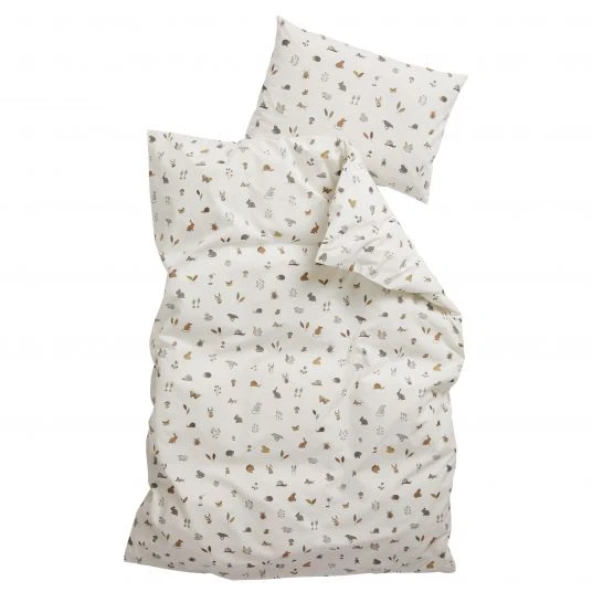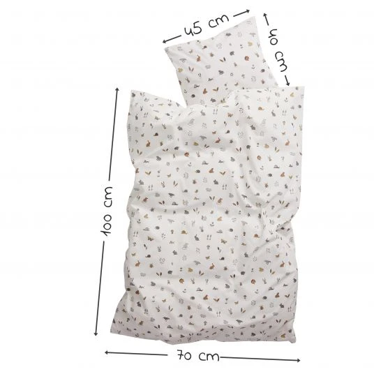 So hat es Deine kleine Schlafmütze im Sommer angenehm kühl im Bettchen und im Winter kuschelig warm. Ausgestattet mit praktischen Druckknöpfen, lassen sich Kissen und Decke schnell beziehen. Eine Maschinenwäsche bei 40°C bringt die schöne Bettwäsche mit Waldtiere-Design jederzeit wieder zum Strahlen.