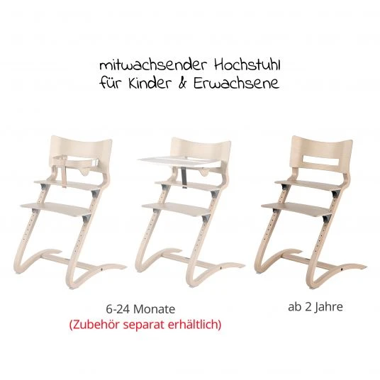 Der Leander Hochstuhl passt ideal zu jeder Wohnungseinrichtung. Mit der ergonomisch geformten Rückenlehne und dem sorgfältig angepassten Sicherheitsbügel wird bereits Dein Baby beim Sitzen gut gestützt. Die gebogenen Beine sorgen für Stabilität und verhindern, dass der Stuhl nach hinten kippt.