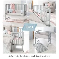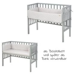 Roba 3in1 Stubenbett, Beistellbett, Bank & Matratze & Nestchen Roba Style – Silbergrau – Taupe
