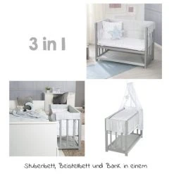 Roba 3in1 Stubenbett, Beistellbett, Bank & Textile-Ausstattung – Sternenzauber Grau – Taupe