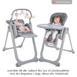 Fillikid Hochstuhl Tom mit Essbrett – klein faltbar nur 4,3 kg – Granit – Kollektion 2022