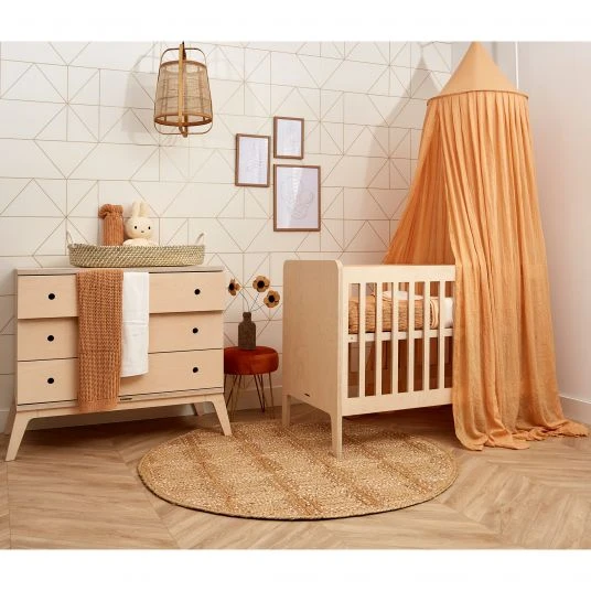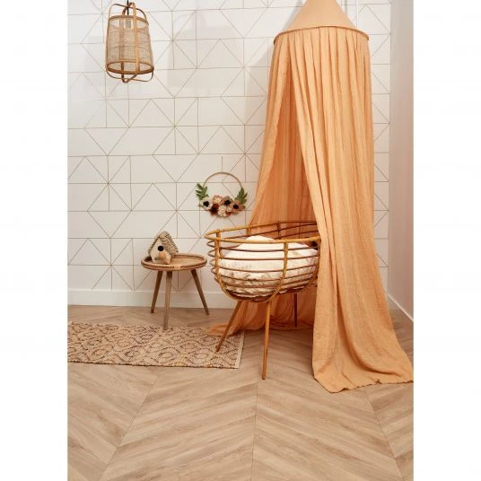 Geschützt vor unangenehmer Zugluft und neugierigen Blicken, schläft es sich unter dem Meyco Baldachin Himmel in Honey Gold besonders entspannt. Der Baldachin gibt Deinem kleinen Liebling ein behütetes, geborgenes Gefühl im Babybettchen oder der Wiege. Dank leichtem, luftdurchlässigem Stoff und offener Vorderseite ermöglicht er auch im Sommer ein angenehmes Klima und eine gute Luftzirkulation.