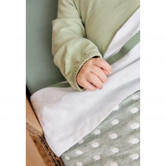 Ob für Unterwegs oder Zuhause – eine Babydecke schenkt Deinem Nachwuchs Wärme und Geborgenheit. Die Meyco Baumwoll-Decke Little Dots in Forest Green wird dabei schnell zum Lieblingsbegleiter. Das weiche, hautfreundliche Baumwoll-Strick lädt zum Wohlfühlen und Kuscheln ein. An kühleren Tagen wärmt sie Deinen kleinen Liebling zuverlässig bei Spaziergängen mit dem Kinderwagen.