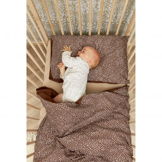 Damit Dein kleiner Schatz nachts ruhig und entspannt schläft, muss er sich rundum wohlfühlen. Mit der Meyco Bettwäsche Cheetah in Chocolate liegt Dein Nachwuchs komfortabel in weicher, anschmiegsamer Baumwolle. Der kuschelige Stoff trägt zu einem angenehmen Schlafklima bei und lädt zum Träumen ein. Dank der zwei verschiedenen Seiten kann die kleine Schlafmütze selbst entscheiden, ob heute das Punktemuster oder die einfarbige Seite oben zu sehen sein soll.