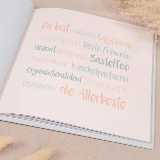 Einige der insgesamt 23 Seiten lassen sich mit persönlichen Erinnerungen, Fotos oder besonderen Worten füllen. So wird das zauberhafte Buch zu einem personalisierten Geschenk, das von Herzen kommt. Da es keinen bestimmten zeitlichen Bezug hat, eignet es sich für jeden beliebigen Anlass. Dank robustem Hardcover und stabiler Fadenheftung bereitet es lange Freude und kann immer wieder gemeinsam durchgeblättert werden.