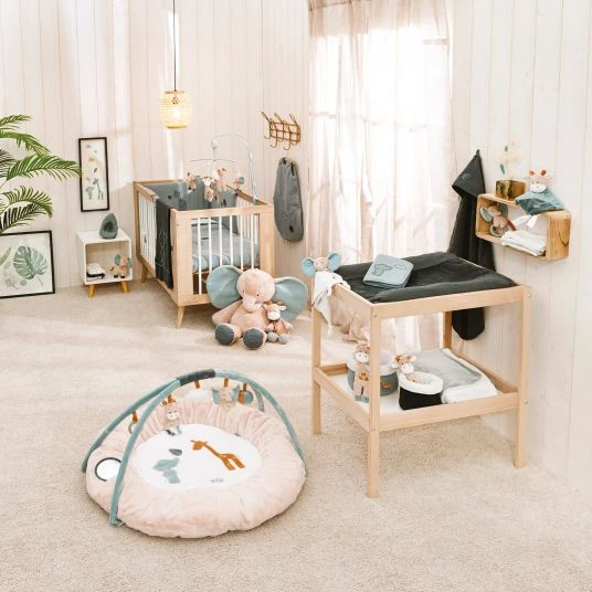 Sie ist ein wahres Multitalent: Ob als Schmusedecke, zum Spielen oder als Wickelunterlage, die Decke ist vielseitig einsetzbar. Mit ihren praktischen Maßen von 75 x 100 cm kannst Du sie immer mitnehmen und platzsparend zusammenlegen. Der Elefant Axel und die Giraffe Luna machen den Kuschelbegleiter zu einem ganz bezaubernden, zeitlosen Hingucker.