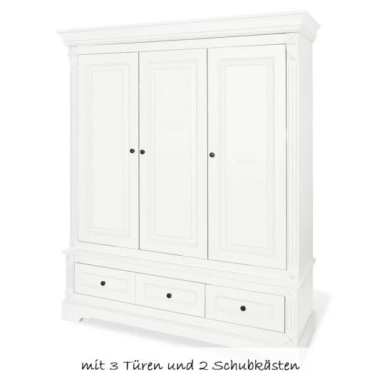 Das Kinderzimmer Emilia von Pinolino besticht durch die aufwendig gearbeiteten Zierleisten und die geschwungenen Sockelelemente. Die edelmatte Lackierung und die Möbelknöpfe aus Metall verbreiten ein edles, barockes Flair. Es besteht aus einem komfortablen Babybett, einer extrabreiten Wickelkommode und einem 3-türigen Kleiderschrank. Damit ist das Zimmerset Emilia eine besonders schöne Spiel- und Schlafumgebung für Dein Kleines.