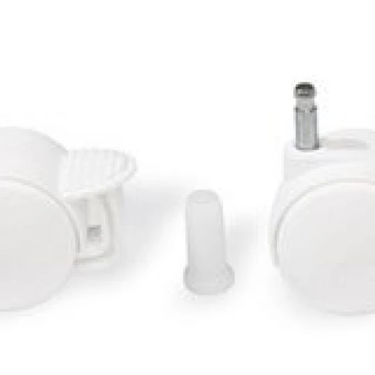 Im Lieferumfang enthalten sind Hülsen für die Bohrung im Holz mit 10 mm Durchmesser. Es handelt sich um Schwenkrollen, von denen 2 für die Sicherheit Ihres Schatzes gebremst sind. Die Rollen sind weiß und passen somit besonders gut zu helleren Holzfarben.