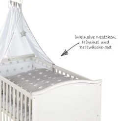 Roba 3in1 Stubenbett, Beistellbett, Bank & Textile-Ausstattung – Sternenzauber Grau – Taupe