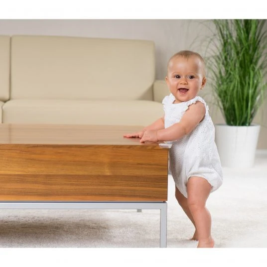 Wird Dein Nachwuchs zunehmend mobiler, erreicht es im Haushalt auch immer mehr Gefahrenstellen. Dazu zählen auch Ecken von Tischplatten, Fenstersimse und anderer Möbel. Damit sich der kleine Wirbelwind nicht verletzt, werden die Ecken mit dem Reer Eckenschutz Soft zum Kleben im praktischen 12er Pack in Transparent/Weiß abgesichert. Durch ihr Design eignen sie sich optisch für Glastische besonders gut.
