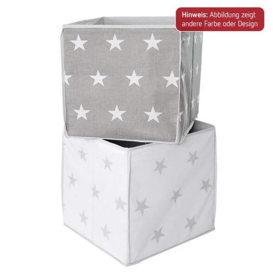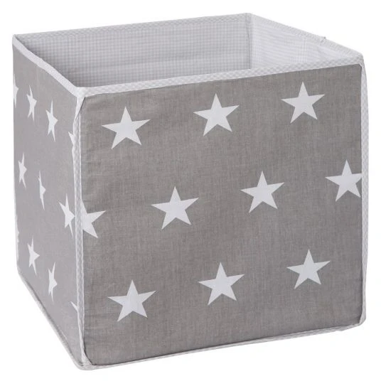 Die Aufbewahrungsbox Little Stars von Roba ist praktischer Stauraum und hübsches Kinderzimmer-Accessoire zugleich. In dem trendigen Würfel kann Kleidung, Spielzeug und mehr abgelegt werden. Das Obermaterial besteht aus einem Polyester-Baumwoll-Mischgewebe, Wände und Boden aus Pappe. Das macht die Box angenehm leicht.