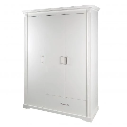 Der Kleiderschrank Marie bietet in insgesamt 6 Fächern und in 1 zusätzliche Schublade jede Menge Platz für Babys Kleidung, Spielsachen und mehr. An einer Kleiderstange kannst Du Schlafsack, Jäckchen und Kleidchen knitterfrei aufhängen und hast so immer alles gut untergebracht. Die Türen sind mit der Soft-Close-Technik ausgestattet. Die Türdämpfung schließt die Türen sanft und leise. Die Schublade ist mit der Soft-Close-Technik ausgestattet. Die Schubladendämpfung schließt die Schubladen sanft und leise. Das heißt, kleine Finger werden nicht eingeklemmt.