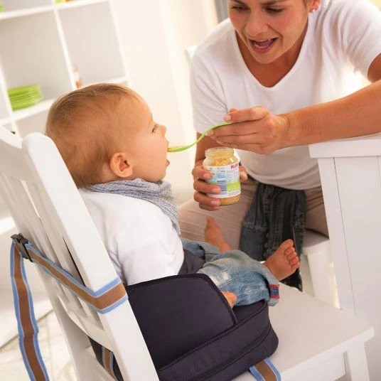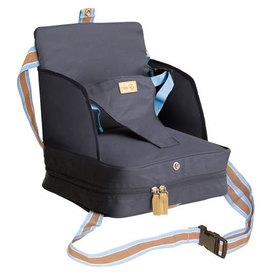 Der Boostersitz in Dunkelblau von Roba ist der ideale Begleiter auf Reisen. Der Sitz im handlichen Format kommt immer dann zum Einsatz, wenn mal kein Hochstuhl vorhanden ist. Das kompakte Maß macht ein Luftkissen möglich, das Du ganz einfach aufblasen und dann im Sitz verstauen kannst. Jetzt wird der Boostersitz mittels robusten Gurten und festsitzenden Schnallen am Stuhl befestigt. So erhältst Du eine bequeme Sitzerhöhung mit Schrittgurt, auf der Dein Kleines bequem sitzen kann.