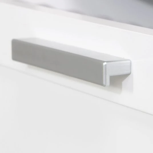 - Material Korpus: Mitteldichte Faserplatte (MDF), weiß lackiert