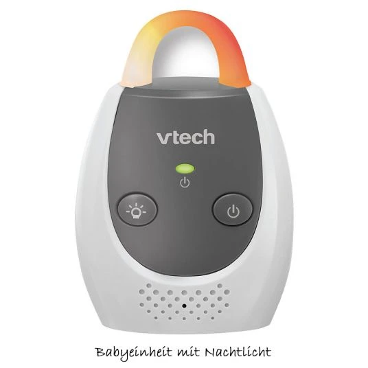 Mit dem Babyphone BM1100 von Vtech kannst Du Dein schlafendes Baby einfach und effektiv überwachen. Ein integriertes Nachtlicht an der Babyeinheit beleuchtet dabei sanft das Zimmer Deines Schatzes. Die bewährte DECT-Technologie sorgt für eine störungsfreie und abhörsichere Verbindung. Das solide Babyphone besteht aus einer Baby- und einer Elterneinheit. Beide können mit beiliegenden Adaptern am Stromnetz angeschlossen werden. Für den kleinen Empfänger sind außerdem zwei wiederaufladbare Batterien im Lieferumfang enthalten, so kannst Du die Elterneiheit auch ohne Stromkabel nutzen und bist flexibler.