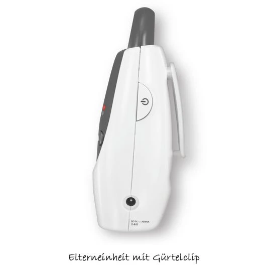 Ein praktischer Gürtelclip lässt Dich die Elterneinheit an der Kleidung festmachen und bequem mit sich tragen. Mit einer Reichweite von 300 Metern hörst Du Dein Kind auch aus großer Entfernung. Die Lautstärke kannst Du per Taste einstellen und anhand der Geräuschpegelanzeige mit 5 LEDs ablesen. Bei geringer Batterieladung und zu großer Entfernung zwischen den Einheiten ertönt ein Warngeräusch.